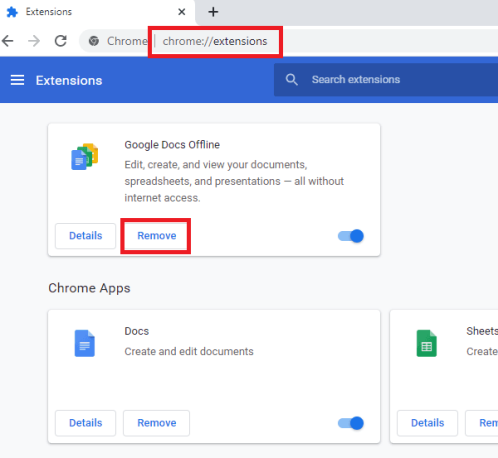 Для Google Chrome откройте chrome://extensions/ в адресной строке и нажмите «Удалить», соответствующее любому расширению, которое вы хотите удалить.