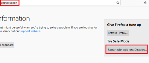 Откройте страницу информации об устранении неполадок, скопировав адрес about: support в адресную строку Firefox и нажмите Enter.