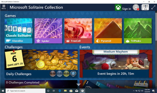 • Microsoft Solitaire Collection — бесплатная коллекция карточных игр, созданных на основе оригинального пасьянса . Solitaire присутствует в Windows уже более 25 лет и включает в себя Klondike (классический Solitaire ), Spider, FreeCell, TriPeaks и Pyramid .