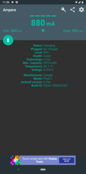 Распространенная ошибка, обнаруженная в мобильных операционных системах, препятствует отображению значка зарядки при подключении телефона. Установка приложения под названием Ampere позволяет определить, есть ли в вашем телефоне такая проблема.