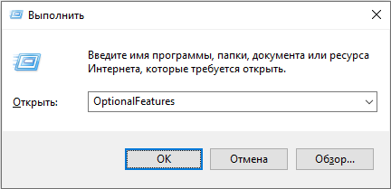 Win+R >> OptionalFeatures >> ОК (или кнопка Ввод).