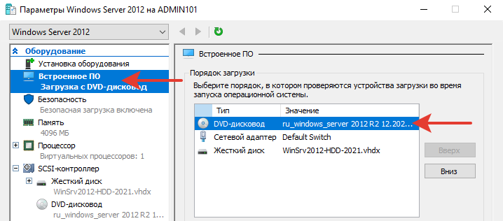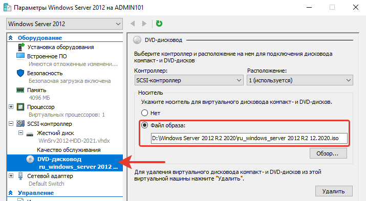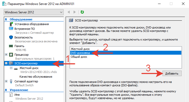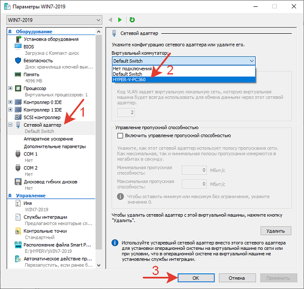 Далее, подключим сетевой адаптер ВМ к виртуальному коммутатору. Переходим в параметры нужной ВМ.