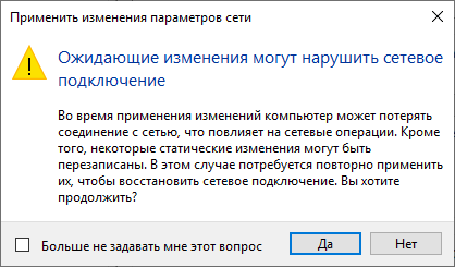 Появится предупреждение о возможности пропадания соединения. Нажимаем кнопку «Да».
