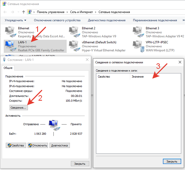 В сведениях физического сетевого адаптера теперь абсолютно ничего нет.