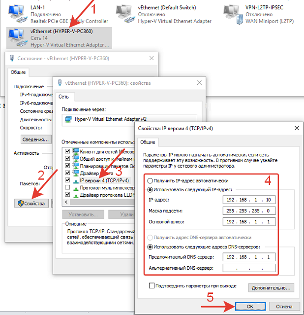 Для настройки IP-адреса и прочих настроек теперь нужно использовать адаптер виртуального коммутатора Hyper-V.
