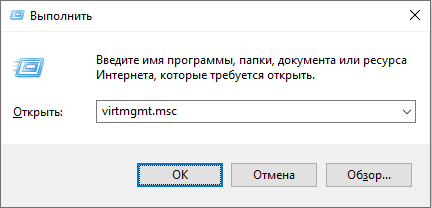Win+R >> virtmgmt.msc >> ОК (или кнопка Ввод).