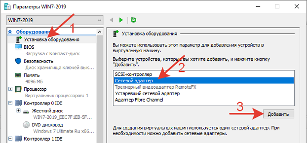 Если сетевой адаптер у ВМ отсутствует, то его нужно создать.
