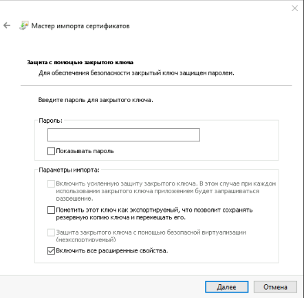 На клиенте добавляем корневой сертификат, который создавали на сервере SSTP. При импорте придётся ввести пароль: