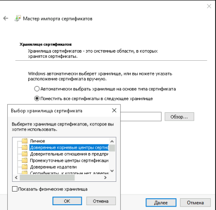 И помещаем сертификат в «Доверенные корневые центры сертификации»: