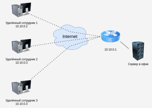 • Удалённый сотрудник может иметь динамический IP и работать за NAT-ом.