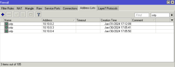 Дополнительно нужно разрешить подключения от наших удалённых клиентов к локальной сети. Я это проделал следующим образом. Создадим адрес лист с адресами пользователей, я его назвал sstp: