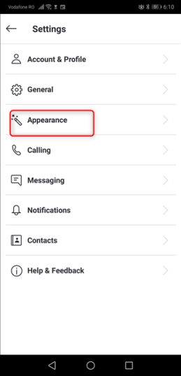В списке доступных настроек Skype нажмите «Внешний вид».