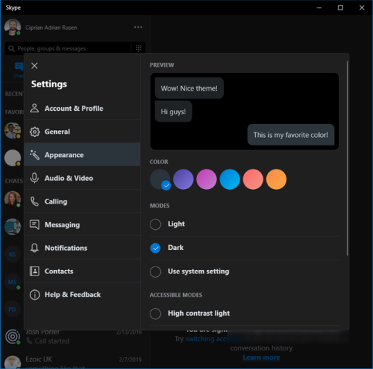 Как включить Dark Theme или Light Theme в Skype для Windows 10