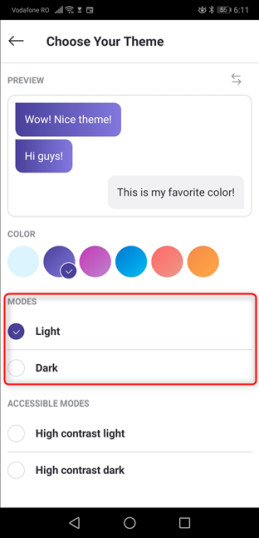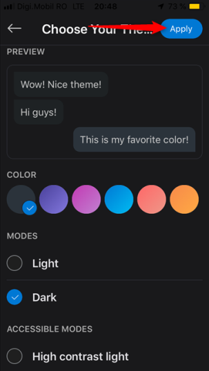Есть также режимы Accessible с высококонтрастным светом и высококонтрастными темными темами, которые вы можете попробовать и посмотреть, нравится ли вам их использование. Для переключения между темами выполните те же действия и выберите нужную тему.