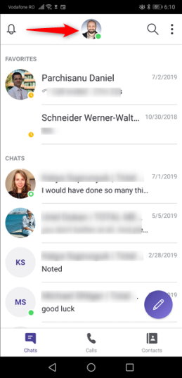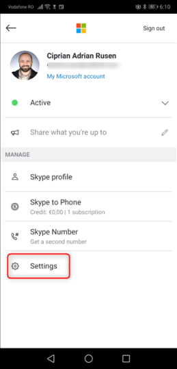 На смартфоне или планшете Android откройте приложение Skype и войдите в свою учетную запись. Затем нажмите на свое изображение в верхней части приложения.