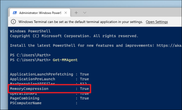 Другой способ проверить, включено ли сжатие памяти, — использовать приложение Terminal на вашем компьютере с Windows.