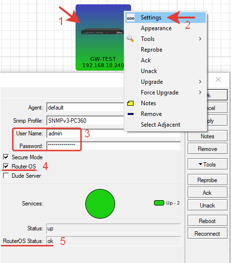 В устройствах, которые нужно обновить должны быть введены логин и пароль, отмечена галочка RouterOS. Статус RouterOS должен быть ОК.