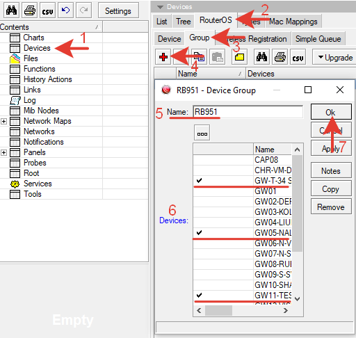 Указываем название группы. Отмечаем галочками необходимые устройства.