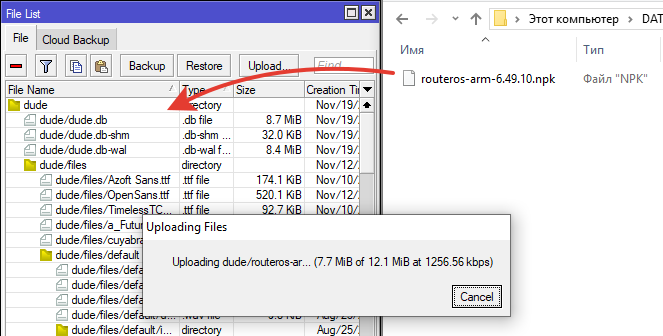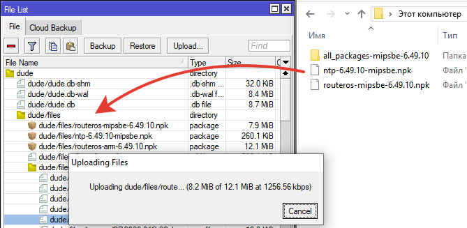 Файл должен располагаться в папке dude/files. Только в этом случае он будет отображаться на вкладке Packages через интерфейс The Dude.