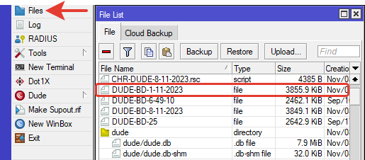 | /dude export—db backup—file=DUDE—BD—1—11—2023 |