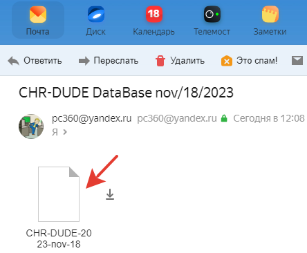 В результате выполнения скрипта на электронную почту приходит письмо с содержание базы данных.