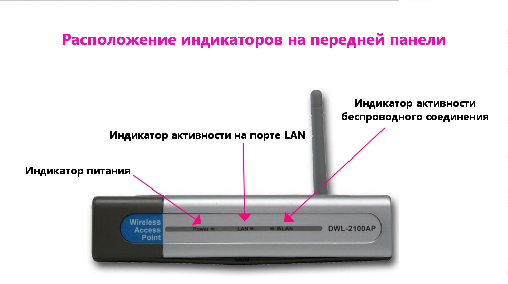 - моргающие при прохождении трафика через WLAN и Ethernet диоды.