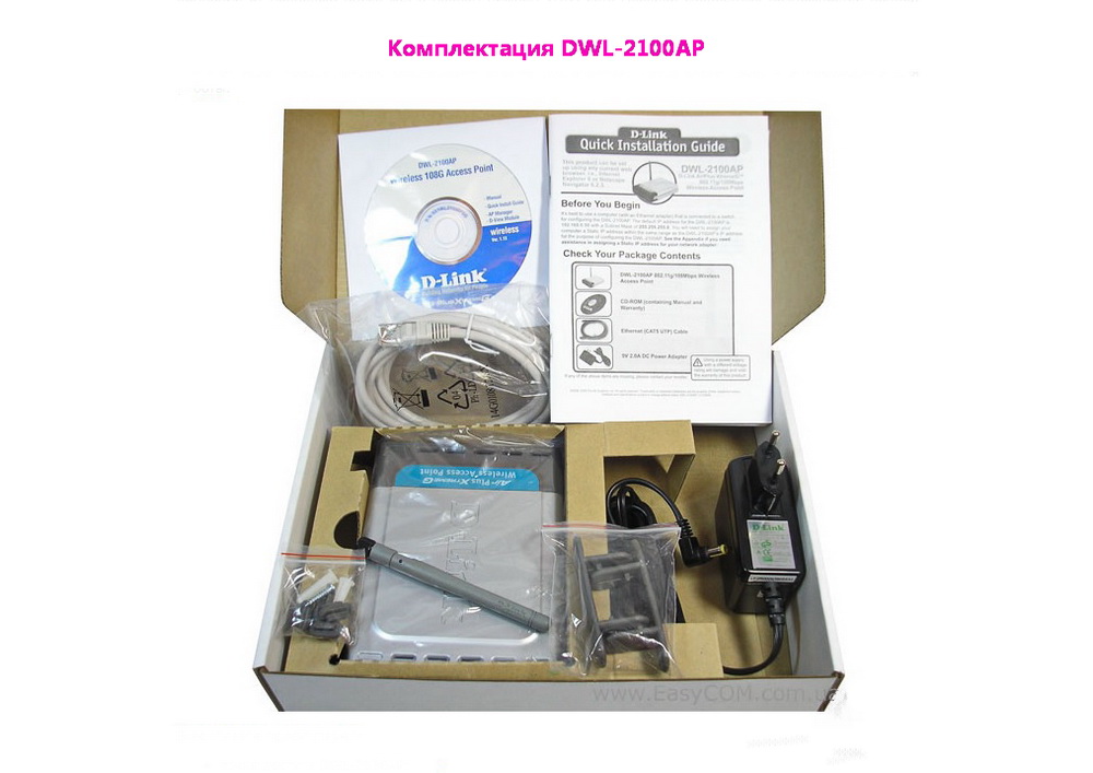 Комплект упакован в фирменную коробку D-Link Corporation, на которой: