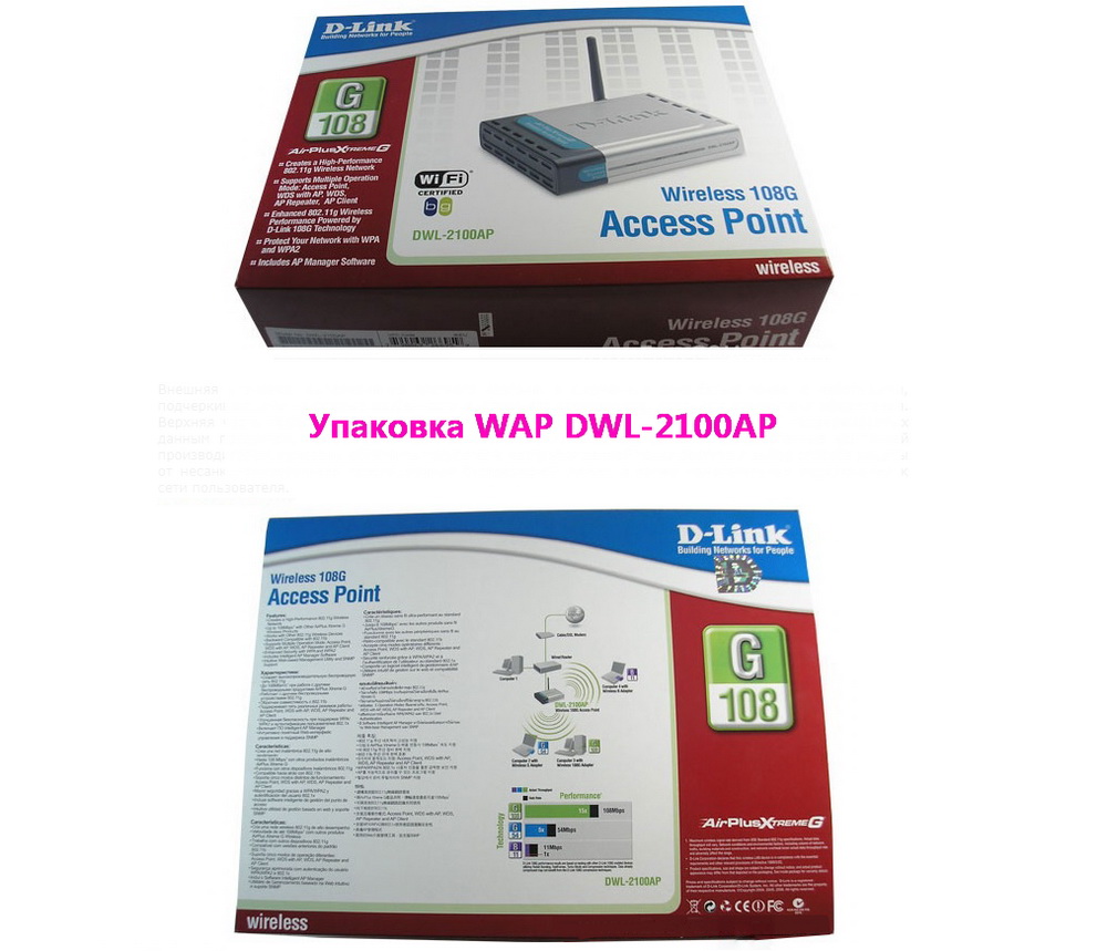 D-Link AirPlus Xtreme G DWL-2100AP — точка доступа, работающая в частотном диапазоне 2,4 ГГц и обеспечивающая максимальную скорость передачи до 108 Мбит/с