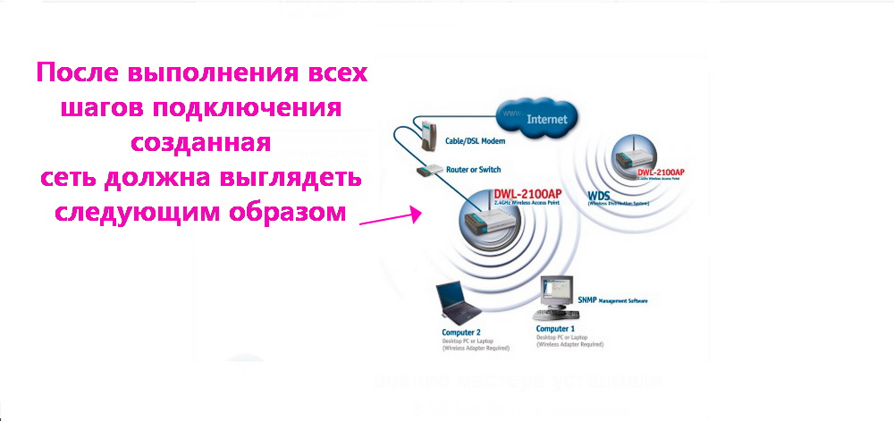 Подключение DWL-2100АР к имеющейся сети происходит в следующем порядке: