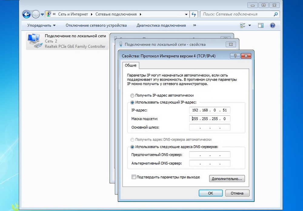ІP девайса по умолчанию — 192.168.0.50, маска — 255.255.255.0. Перед настройкой базовой станции нужно задать компьютеру/ноутбуку/планшету/смартфону статический адрес в этой же подсети. К примеру — 192.168.0.51/_52/_53 и т. д. Каждому сетевому узлу присваивается свой ІP, два одинаковых в одной подсети быть не должно.