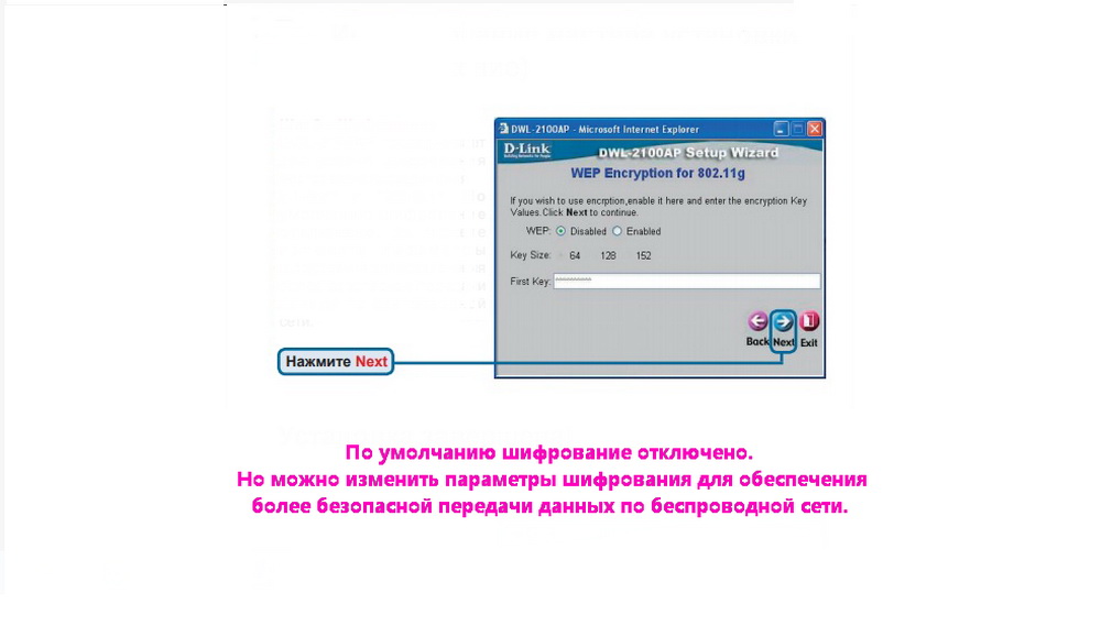 DWL-2100АР поддерживается 64/128-битное WEP-шифрование данных, а также функции безопасности WPA/WPA2
