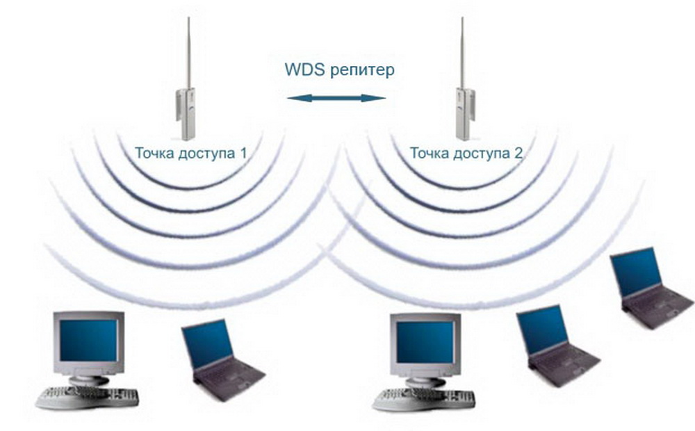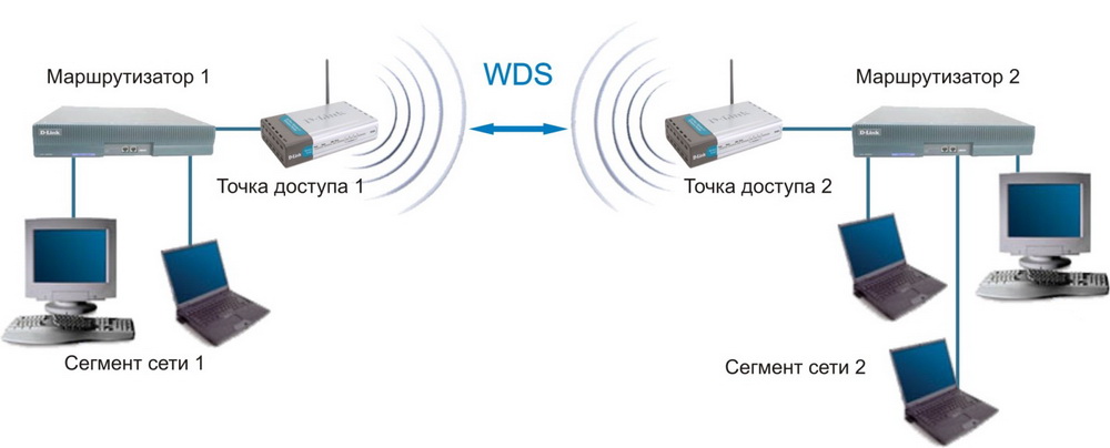 - WDS — режим моста, когда несколько станций создают друг с другом беспроводное мостовое соединение;