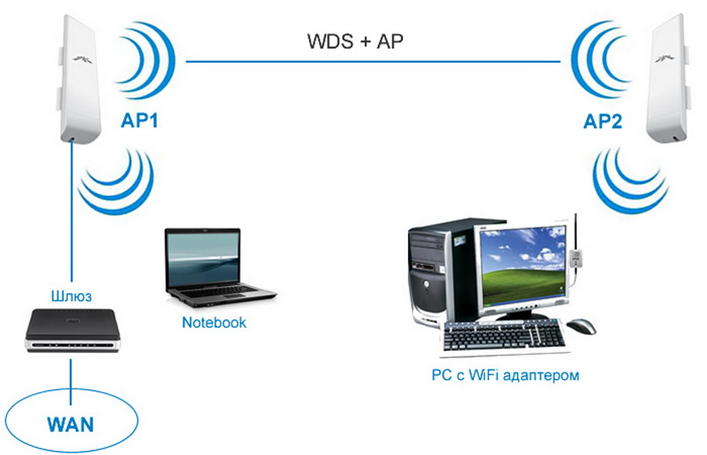 - АР Repeater — режим повторения сигнала основной базовой станции, если прямая связь между точками невозможна.
