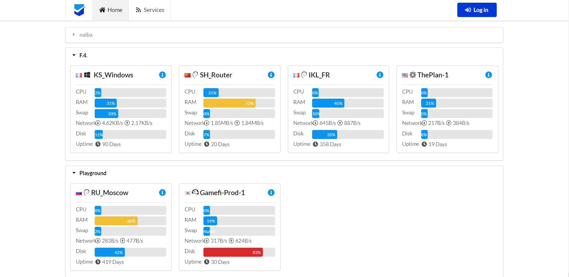 Речь идёт про open source проект nezha. Можете сразу оценить функционал в публичном demo — https://ops.naibahq.com. Данный мониторинг поддерживает следующие метрики:
