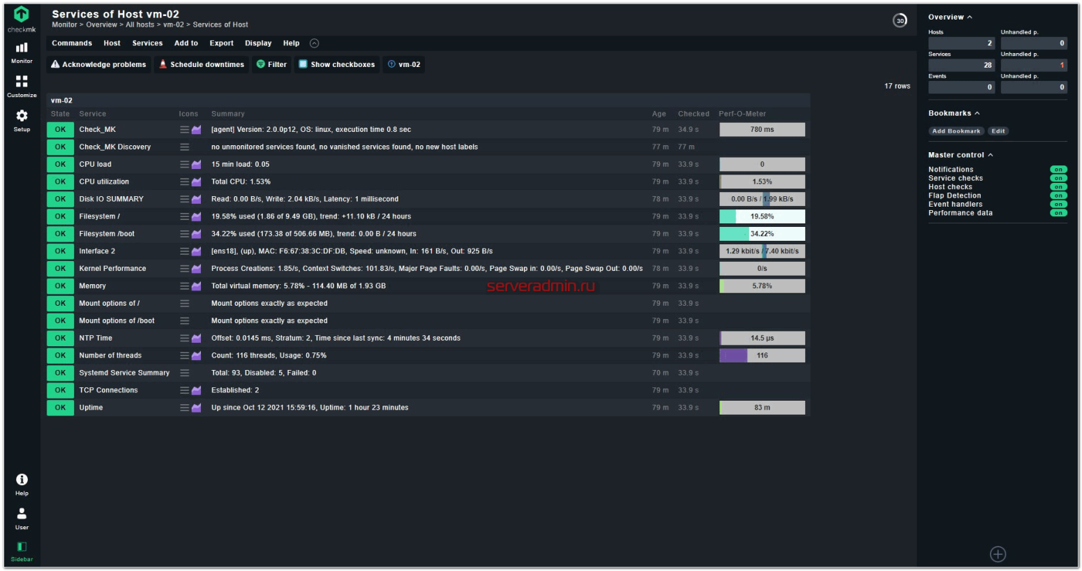Так же нравилось дефолтное отображение статусов и состояний хостов, сервисов. Не нужно было это допиливать до удобного и информационного состояния, как в Zabbix, где первым делом после установки перенастраиваешь дефолтный дашборд, чтобы стало удобно. Хотя это очень субъективно.