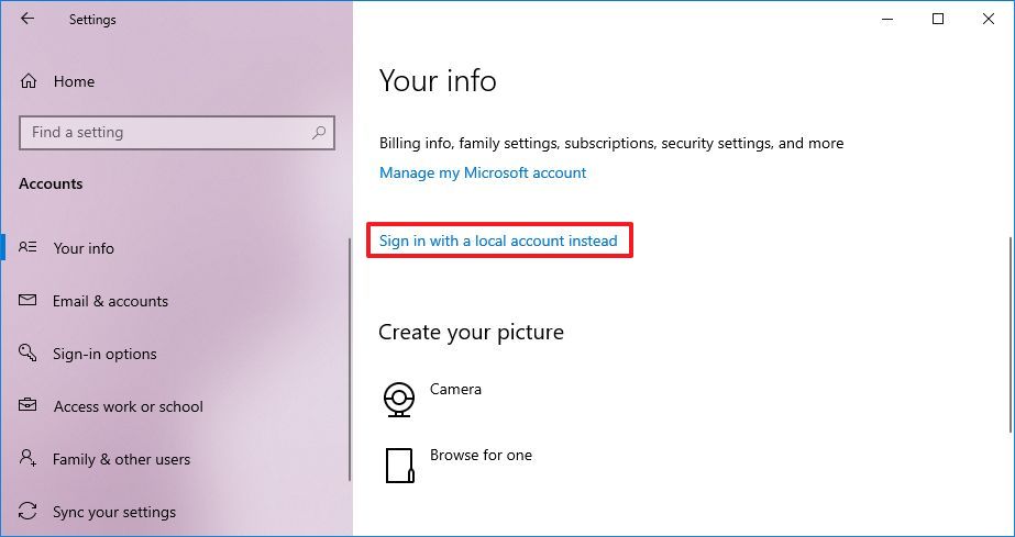 Чтобы переключиться на локальную учетную запись и удалить пароль, выполните следующие действия: