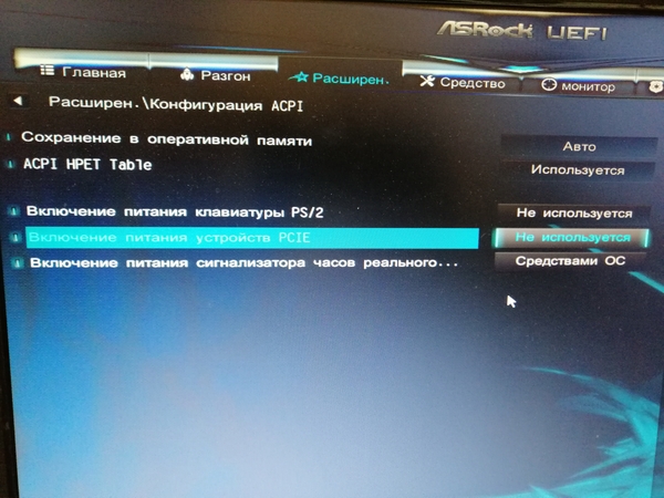 Включение питания устройства PCIE.