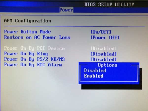 Попав в BIOS активируем настройку Power On LAN (Wake-on-LAN, WOL). В разных биосах она называется поразному. Выставляем значение настройки – Enabled.