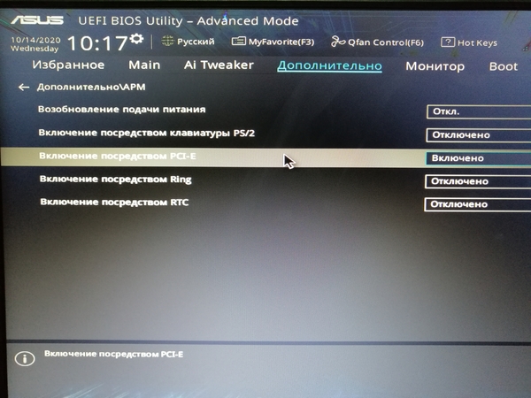 Включение посредством PCI-E.