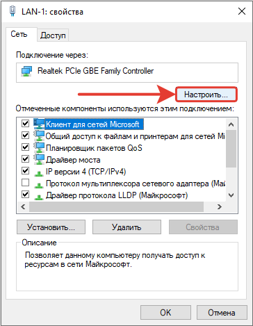 В раскрывшихся свойствах нажимаем кнопку «Настроить».