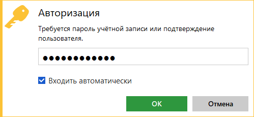 После некоторого времени ожидания появится окно для авторизации. Вводим созданный пароль. Отмечаем галочкой «Входить автоматически».