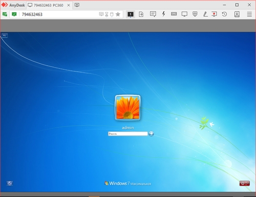 Получаем изображение и видим экран входа в учетную запись удаленного ПК. Вводим пароль, входим и выполняем требуемую работу.