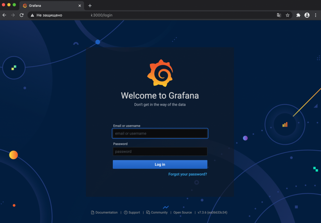 После выполнения описанных в этом разделе манипуляций, сетевой экран будет разрешать подключения по порту 3000. В этом можно убедиться, открыв в браузере интерфейс Grafana. Логин и пароль по умолчанию admin.