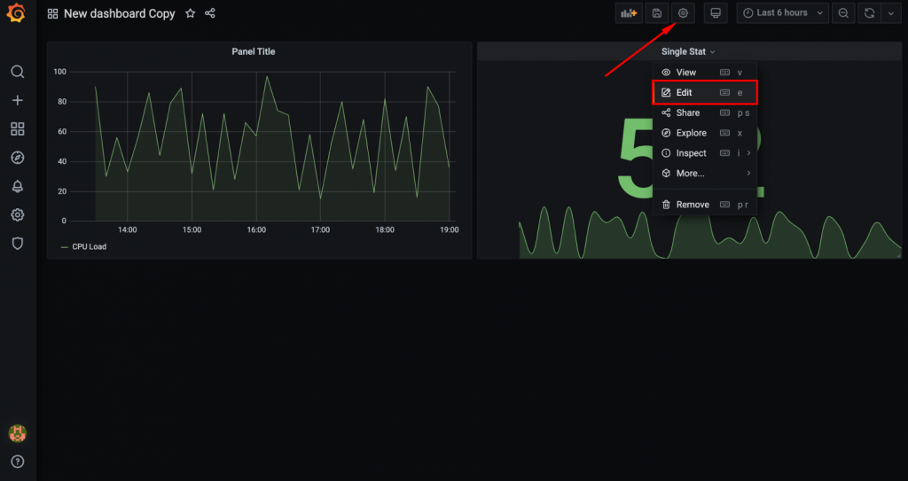 У каждой панели и каждого дашборда в Grafana есть свой набор настроек. Настройки первой открываются через выпадающее меню панели, а настройки второго откроются после нажатия на шестеренку в верхнем правом углу экрана.