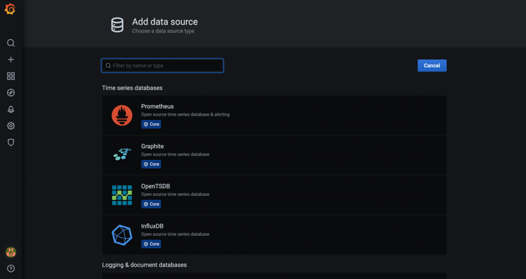 Grafana имеет встроенные панели, которые можно сразу начинать использовать. По умолчанию представлены следующие типы: