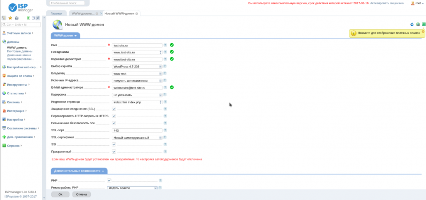 Установка программы завершена, теперь не менее интересная задача — настройка ispmanager 5.