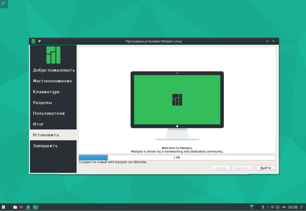 Осталось только дождаться пока завершиться установка Manjaro: