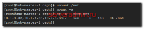 На этом по поводу cephfs все. Можно пользоваться. Переходим к блочным устройствам rbd.