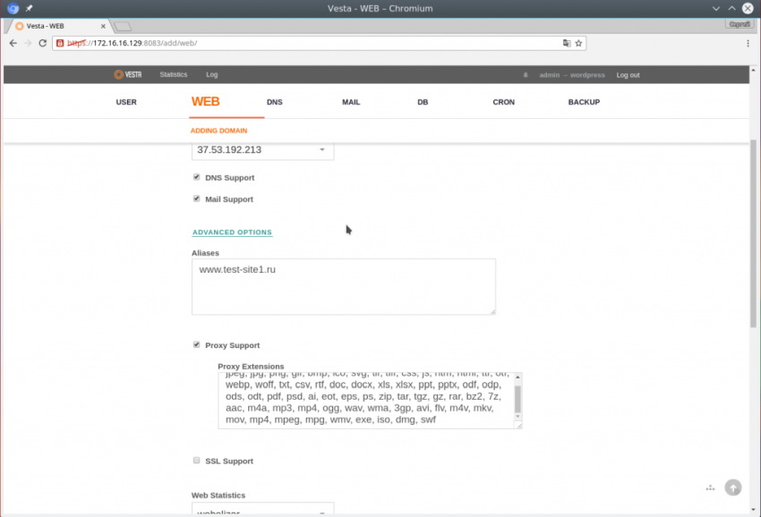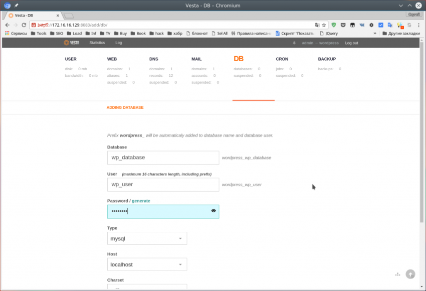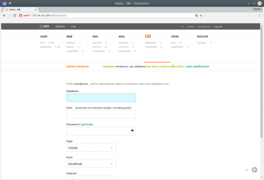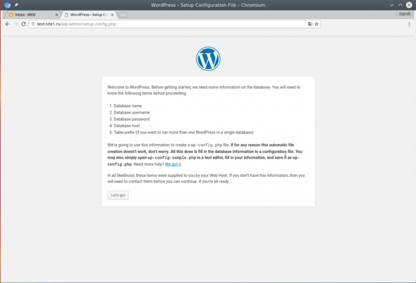 Панель управления VestaCP полностью настроена и теперь вам осталось только настроить сам движок.