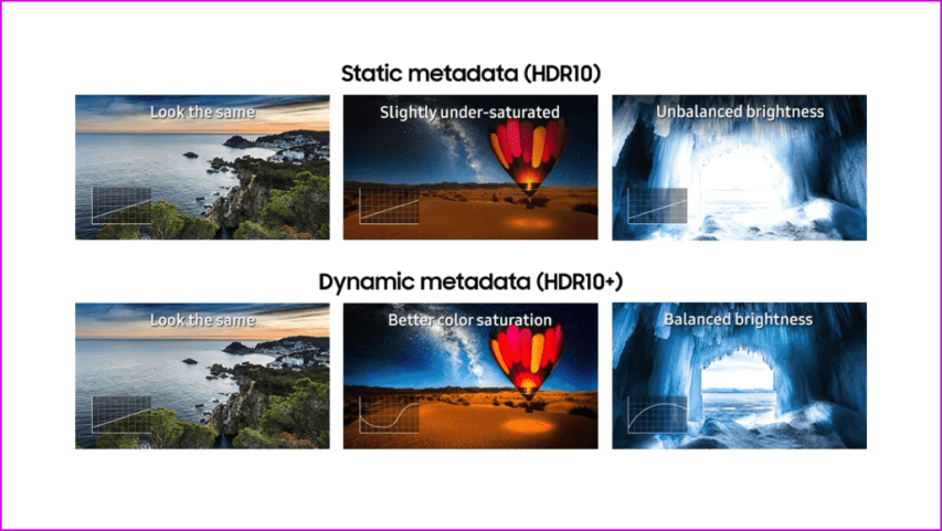 HDR10 использует статические метаданные для контента. Для сравнения, HDR10+ использует динамические метаданные, которые позволяют отображать динамические цветовые тона между кадрами для более реалистичного и захватывающего визуального восприятия. Последнее дает HDR10+ явное преимущество перед HDR10.